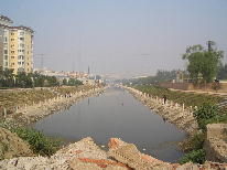 廊坊市是河北省的直辖市,地处北京市和天津市之间,伴随两市的经济发展,廊坊也受其影响成为交通发达的文化科研都市。石油,石炭,天然气等矿物资源丰富,农业作为北京和天津的粮食基地具有很高的生产能力。现在,市区部进行着大规模的城市开发建设,不过在供水不足的问题上与北京一样。根据城市计划,要建设包围市街的宽10m、全长23㎞的环状水路,把污水处理厂的处理水作为再生水再利用的计划。