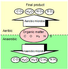 | Decomposition of organic matter under the condition of aerobic and anaerobic |