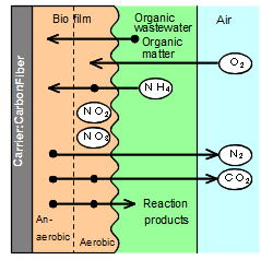 Active biofilm are formed by high bioaffinity of carbon fiber, and its