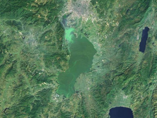 また、歴史文化を持つ湖であり、周りに大観樓、盤龍寺、寨山滇王墓など多くの名所旧跡があります。かつては、周囲の山紫水明を足して、「高原明珠」(高原の真珠)と称えられていました。 しかし1970年代以来、昆明など周辺都市の工業の発展と耕地の開発により、滇池の水は汚染されてきました。特に富栄養化が深刻で大量のアオコが成長し、用水上の問題をもたらしています。 近年、太湖、巣湖と並び「中国3大汚染湖」の一つに数えられ、中国の国家的重要課題として水質汚染問題の解決が叫ばれています。