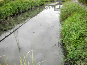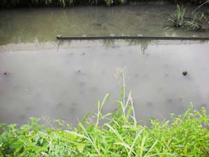 旧芝川再生项目Ⅱ vol.2 2006年7月1日(周六)设置的碳素纤维的水质净化效果怎么样了呢? 碳素纤维水质净化材设置状况 由于浑浊水的流入,虽然没透明度,但能看见浮筒。