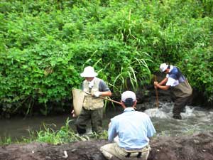 (独)自然共生研究中心的生态系统调查确认到了在设置碳素纤维前没有见过的鲤鱼·虾虎鱼·鳗鱼等多种鱼类·水生生物的姿态。