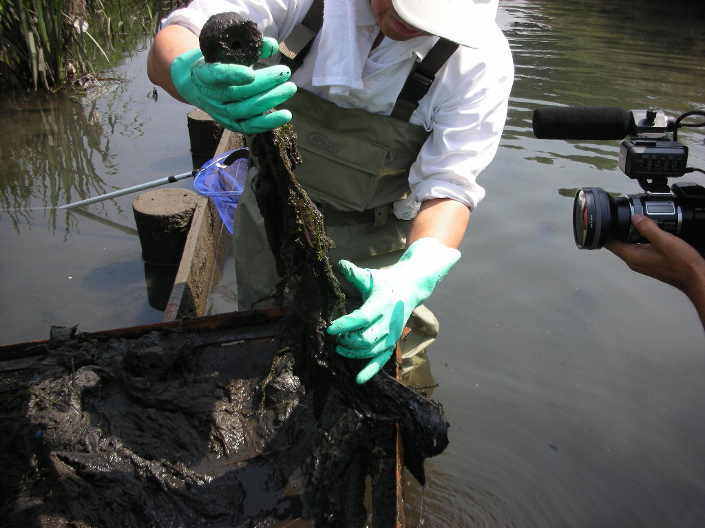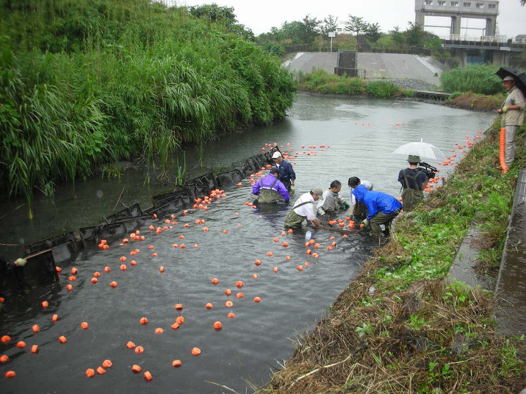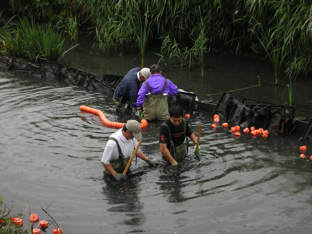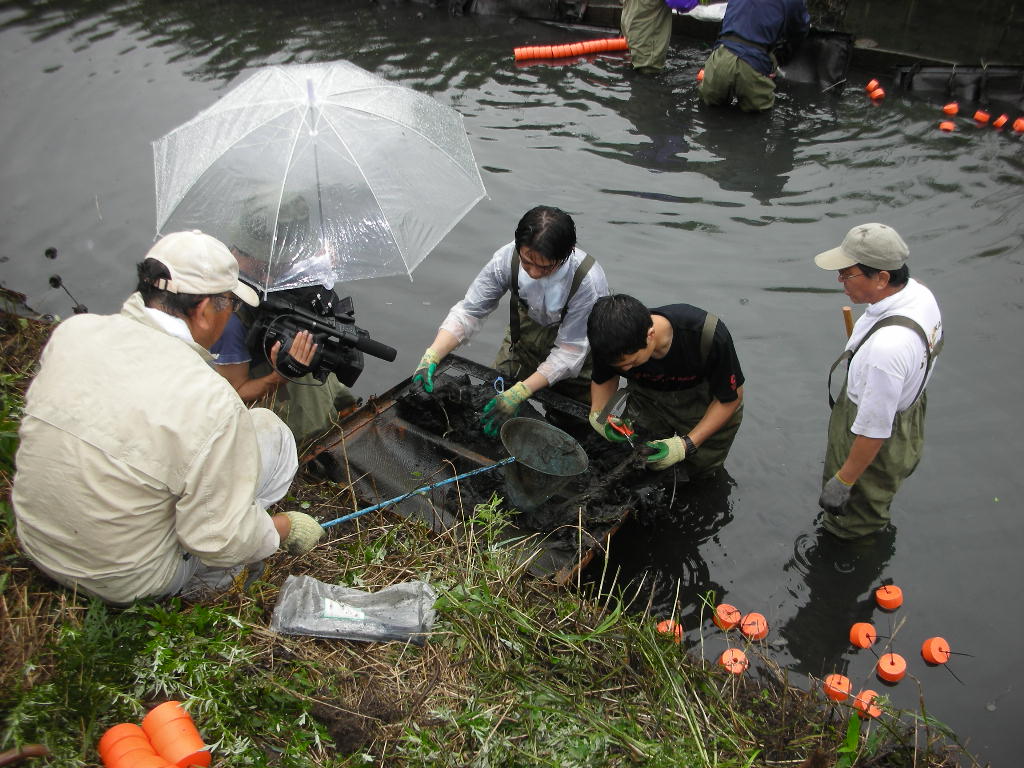 ”旧芝川再生プロジェクト”炭素繊維浄化施設の改修2007年6月13日 小島先生による炭素繊維浄化施設の点検旧芝川再生プロジェクトが埼玉県や地域住民の方々の要望により継続されることになり、炭素繊維浄化施設の改修を行うこととなりました。