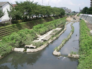 旧芝川再生项目 vol.7旧芝川再生事业的状况 旧芝川再生事业整治了一部分为水质净化的湿地和玩水空间的水湾等,制造让孩子们在水边玩的场所。