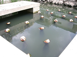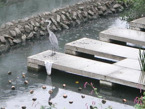 湿地中碳素纤维的设置地点栖息着鱼、乌龟等许多生物。水边还聚集着苍鹭和野鸭等许多鸟类。 |