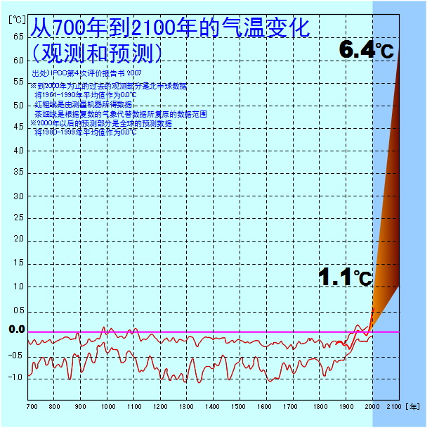 根据联合国机构“政府间气候变化专门委员会”(简称:IPCC)的预测,2100年世界地面平均气温与2000年左右相比将上升0.3~4.8℃。虽然排出的温室效应气体的90%以上是二氧化碳,但甲烷等其他温室效应气体,特别是氟利昂等人工温室效应气体有着二氧化碳数千倍的温室效果,即使很少的量也让人很担心其影响。被视为问题的全球变暖的原因是人为活动引起的二氧化碳和氟利昂等温室效应气体的增加,称为地球气温上升现象。