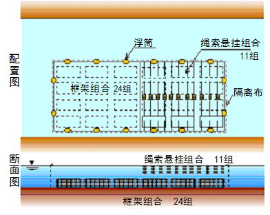 碳素纤维水质净化材:框架组合 24组 (2008年度设置)、 项目的成果 由于设置了简易隔离布并在水面上设置了(半面)碳素纤维水质净化材,可以确认到透视度、COD的变化,能确认到一定的水质净化效果。