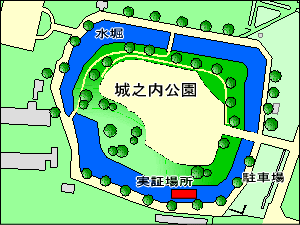 平成21年度大泉町城之内公園水質浄化プロジェクト平成21年度 プロジェクト概要 水質浄化の確認をよりわかりやすくするため、炭素繊維水質浄化装置を簡易隔離シートにて覆い、周辺水の影響を受けづらくします。また、溶存酸素の多い水面近くに、炭素繊維水質浄化材を設置して、フレームユニット上の水質向上を図ります。 炭素繊維水質浄化 実証場所炭素繊維水質浄化装置の設置位置は平成20年度と同一場所です。 所 在 地 群馬県邑楽郡大泉町城之内2丁目