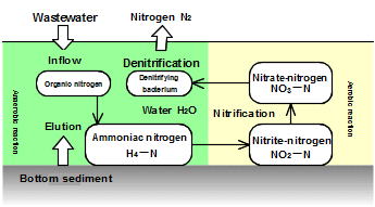 ¡¡In the microorganisms attached to CarbonFiber, since denitrifying bacteria are abundant, it is decomposed into nitrate nitrogen and nitrogen gas, and diffuse into the atmosphere. Microorganisms storage phosphate ions as polyphosphoric acid, removed for phosphorus. Further, carbon fibers also help to elute iron ions, it is immobilized and insoluble becomes iron phosphate by the presence of iron ions.